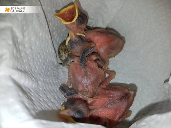Depuis plusieurs semaines déjà, nous recevons énormément d’oisillons dont le nid a été retiré ou détruit lors de travaux d’entretien du jardin ou pendant la rénovation d’une toiture. Ces nichées entières comportent souvent des oisillons à peine nés et parfois même des œufs. À cet âge, les oisillons sont extrêmement fragiles et leurs chances de survie sont alors très minces…