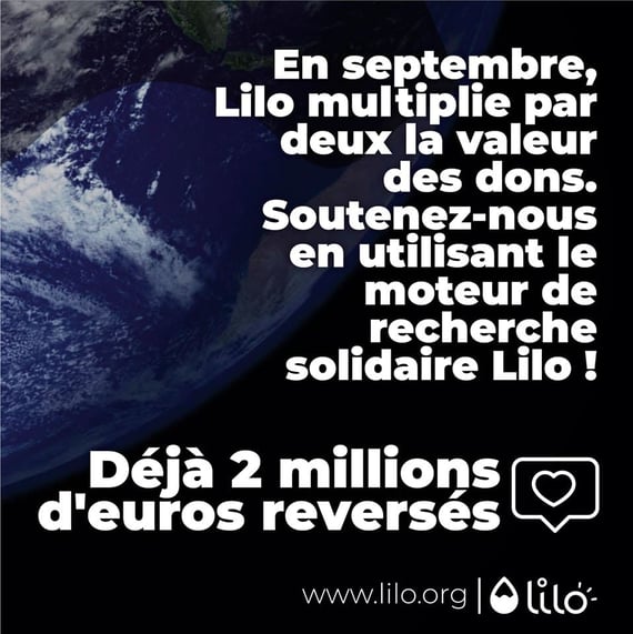 En plus, jusqu’au 30 septembre, Lilo double le montant des dons ! Alors, si vous ne nous avez pas encore rejoint, c’est le bon moment 😉